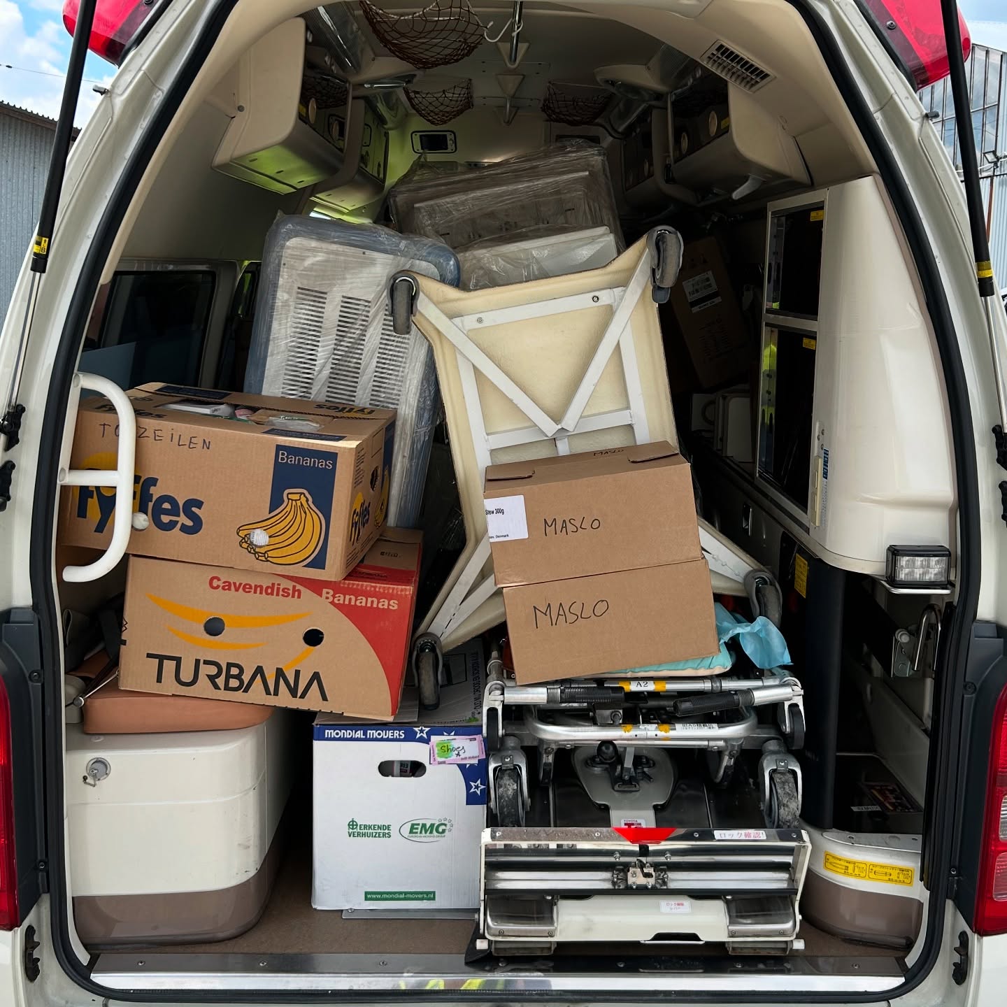 24 mei 2025 ging ik met Convoy 59 mee naar Lviv in Oekraine. Deze keer een klein konvooi met ‘maar’ 2 ambulances, uit Frankrijk en helemaal uit Japan. Deze wagens waren volgeladen met medische apparatuur en andere hulpgoederen. Het was geen gemakkelijke rit. Na een dag rijden naar Polen gingen we de volgende dag richting de grens. We hadden onder andere te maken met een haperende startmotor, elektronicaproblemen en een olielekkage. In Polen moesten we ook twee couveuses ophalen, dat bleken ruim 2 meter hoge en loeizware couveuses te zijn. Na het deels demonteren van de machines en met hulp van twee Oekrainers hebben we ze alsnog de wagens in gekregen. De grensovergang ging deze keer redelijk soepel en duurde slechts een paar uur. We arriveerde rond middernacht in Lviv waar we werden opgewacht door militairen waar we de ambulances aan hebben overgedragen. We werden tijdens de avondklok via meerdere check-points terug naar de grens gebracht.